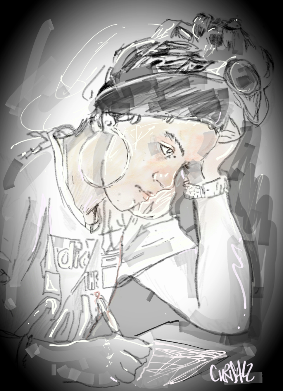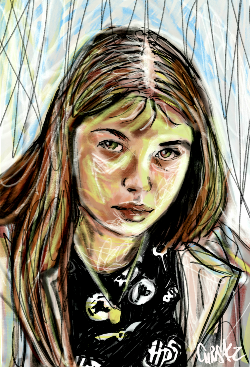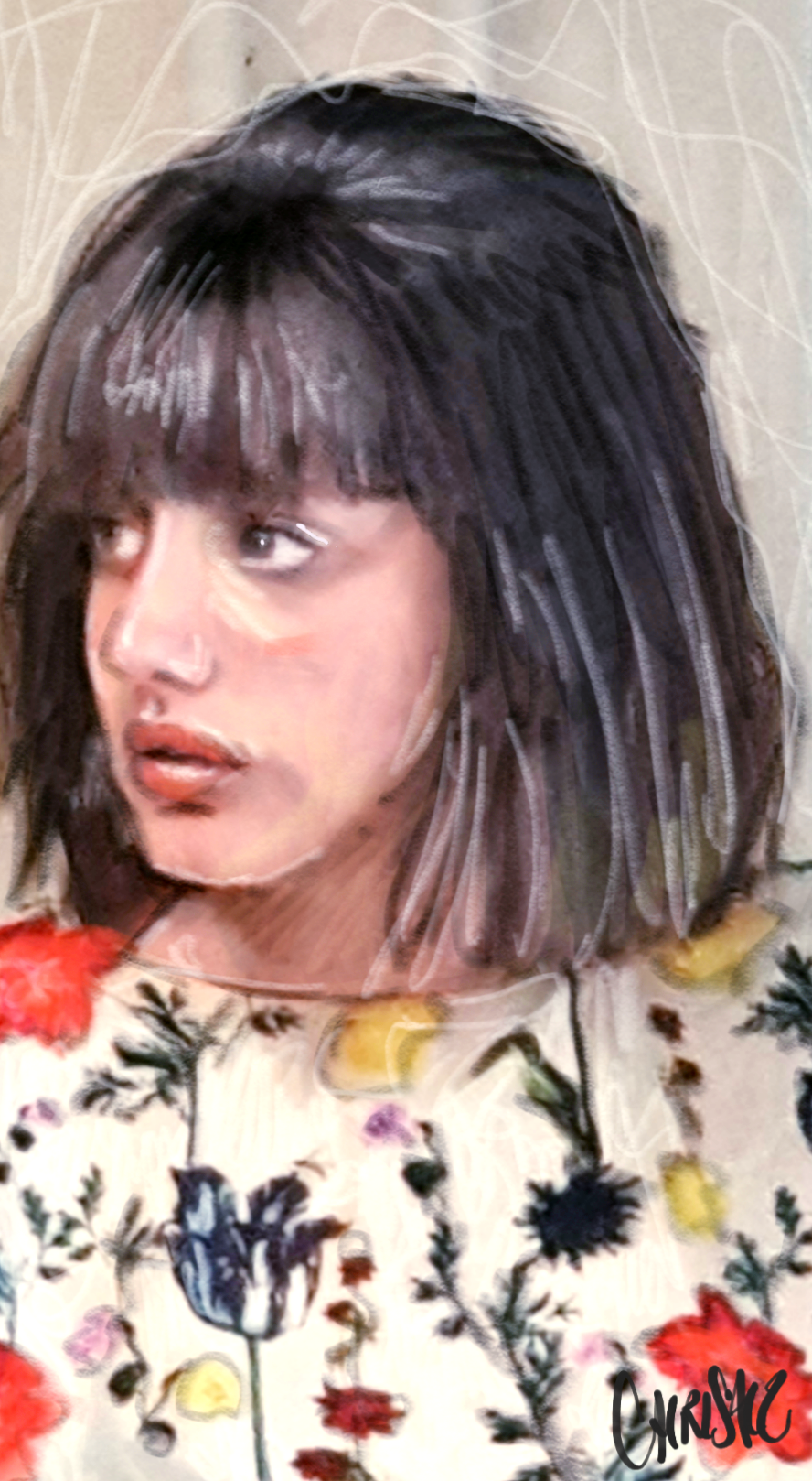J'ai conservé précieusement ce portrait dont je n'ai pas fait l'essentiel, tel quel. Étonnamment, il fut l'un des rares dessins à survivre à l'incendie de ma maison fin 2015, alors que des milliers d'autres ont brûlé.