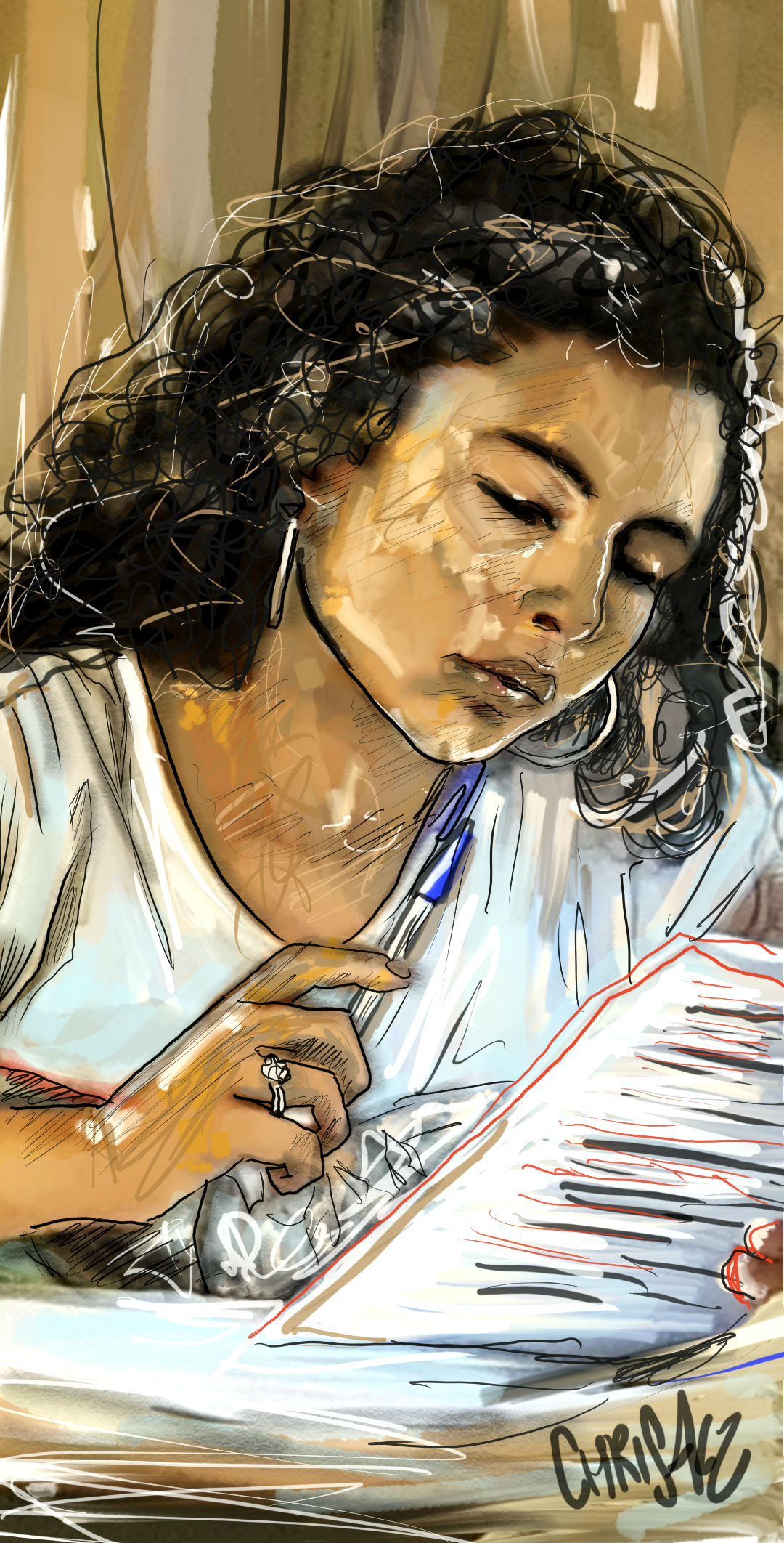 Nahkle, Liban, 27 août 2018, dessin au stylet sur écran tactile.