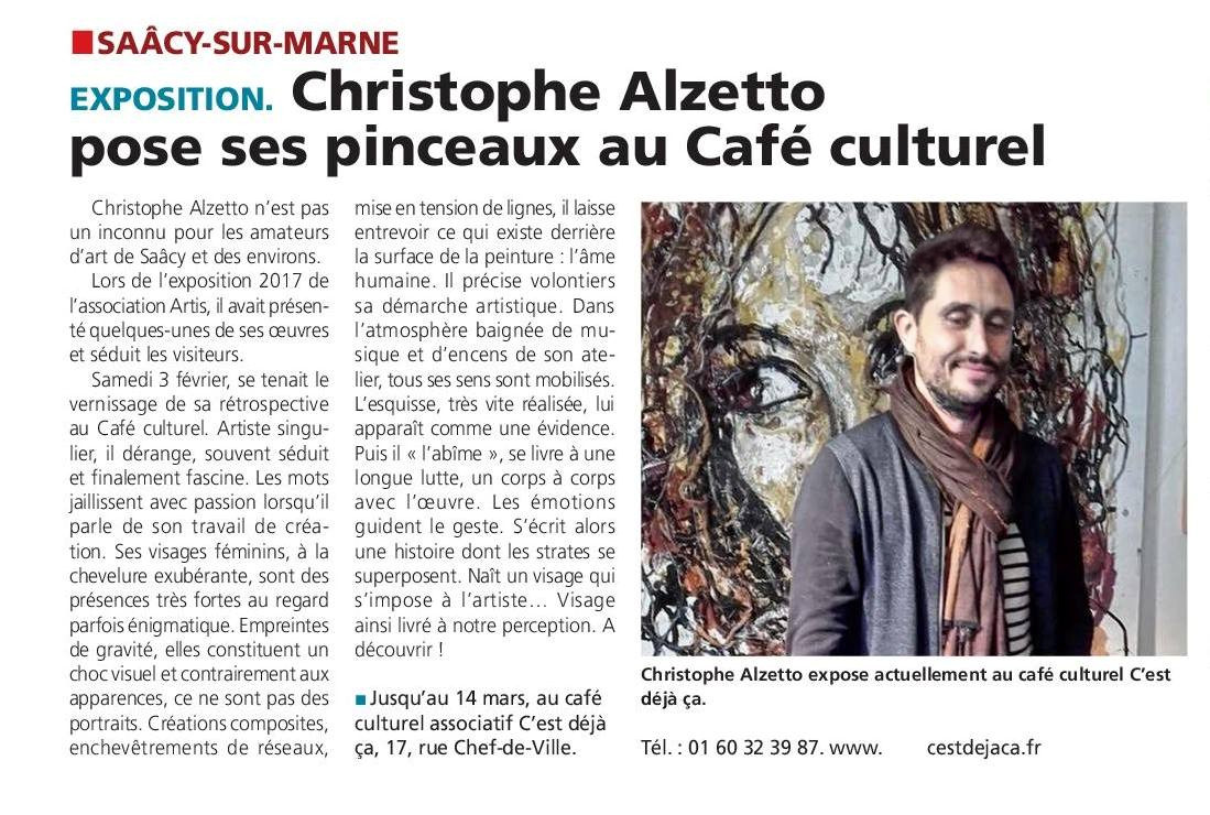Exposition peintures-collages et dessins de visages féminins au style enchevêtré inimitable de Christophe Alzetto, jusqu'au mercredi 14 mars, au Café Culturel C'est déjà ça. Entrée gratuite.
