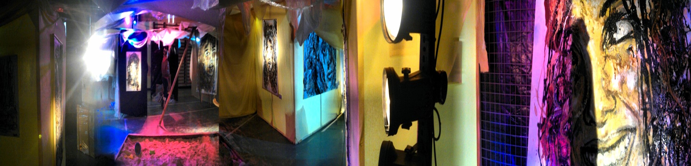 L'artiste vous invite pendant 6 jours, non seulement à découvrir ou redécouvrir son oeuvre peinte, mais aussi à explorer un univers poétique étrange, fait d'un labyrinthe de cabanes de fortune, de passages secrets, de lumière et de musique.
