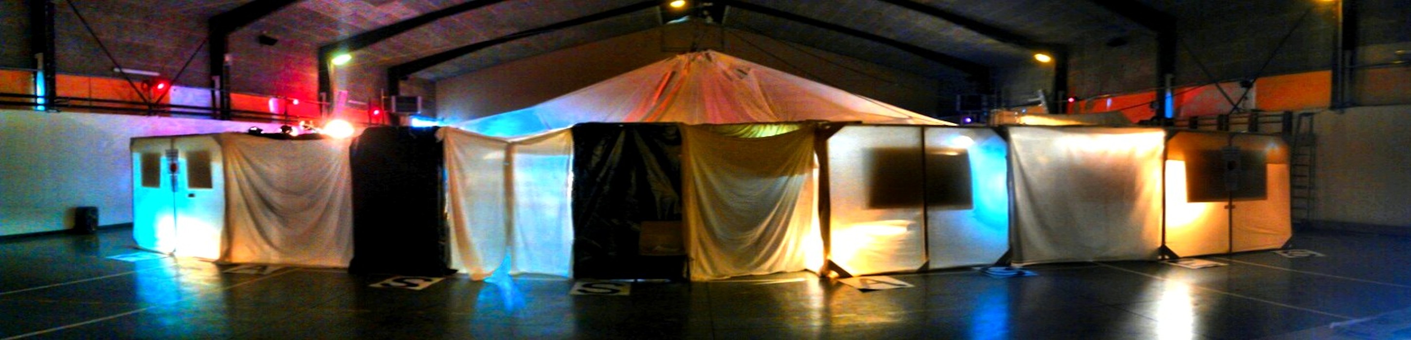 L'artiste vous invite pendant 6 jours, non seulement à découvrir ou redécouvrir son oeuvre peinte, mais aussi à explorer un univers poétique étrange, fait d'un labyrinthe de cabanes de fortune, de passages secrets, de lumière et de musique.